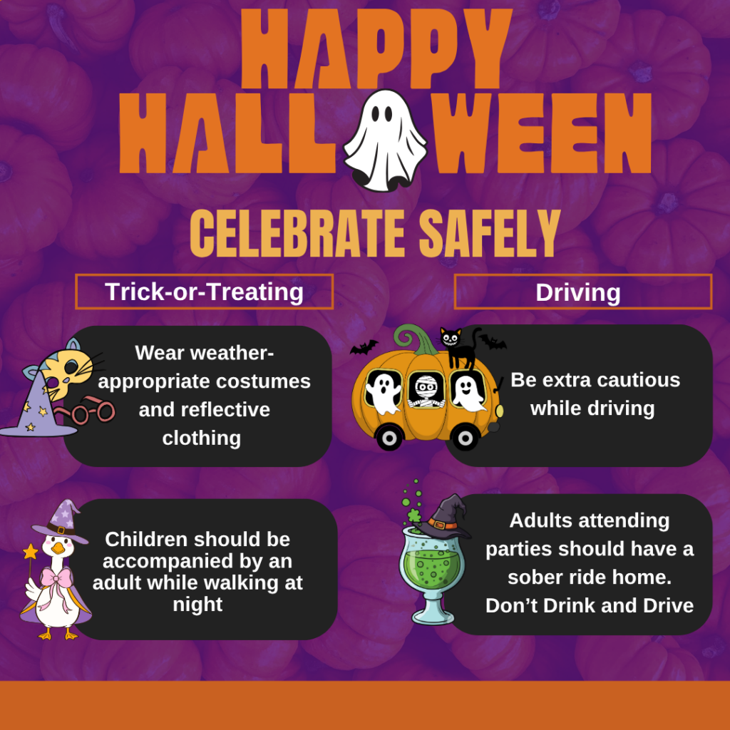 Additional Halloween safety tips can be found on the National Highway Traffic Safety Administration and the Food and Drug Administration websites.